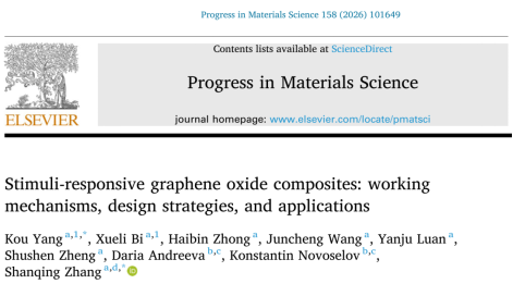 近日,我校诺奖得主联合实验室在智能二维材料领域取得新进展,相关综述论文“Stimuli-responsive graphene oxide composites: working mechanisms, design strategies, and applications”正式发表于国际材料科学领域的顶级权威综述期刊《Progress in Materials Science》(影响因子44.8,中科院一区TOP)。该成果由我校张山青教授、杨蔻副教授和新加坡国立大学康斯坦丁院士合作共同完成,色情直播平台