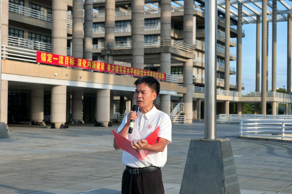 党委书记周东斌、副书记杨刚、离退休教授梁亮,辅导员老师以及2025级食品科学与工程、应用化学专业218名学生参加升国旗仪式。升旗仪式由2025级辅导员郭佳欣主持。