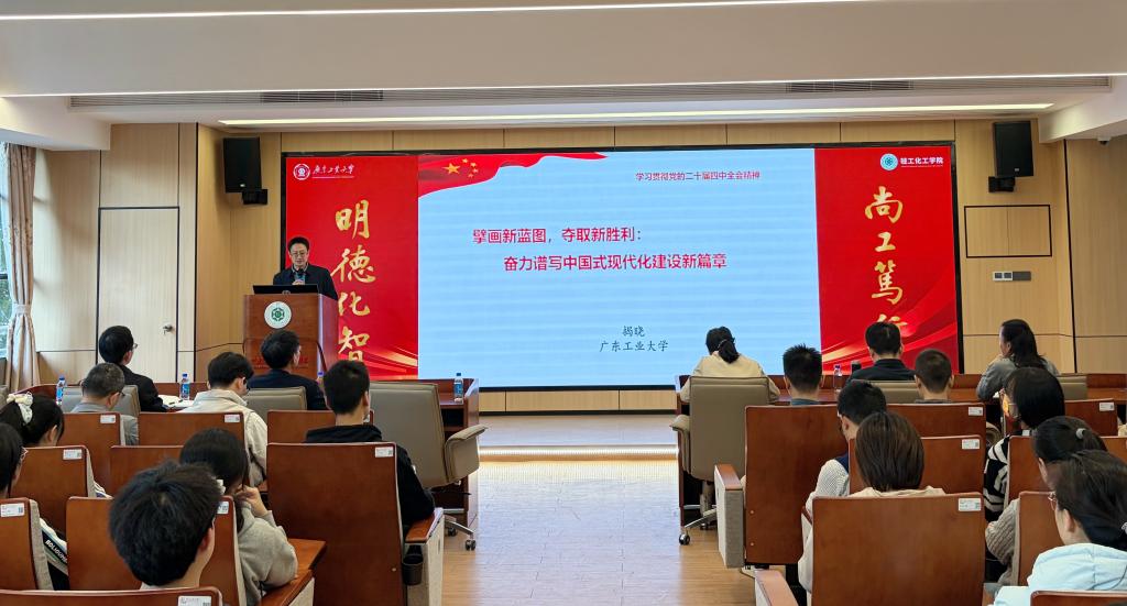 报告会上,揭晓教授以《奋力谱写中国式现代化建设新篇章——“十五五”规划解读与时代使命》为题,紧密围绕党的二十届四中全会精神,系统介绍了“十五五”规划的历史方位与历史使命及“十五五”规划的重点任务与战略举措。他从理论与实践两个维度出发,深入分析了“十四五”时期我国在经济实力、科技创新、产业升级、绿色转型、民生改善等方面取得的辉煌成就。他围绕规划中关于“建设现代化产业体系”“加快高水平科技自立自强”“构建新发展格局”“统筹高质量发展和高水平安全”等十二项战略部署进行了生动解读,揭示了其内在逻辑与实践要求。