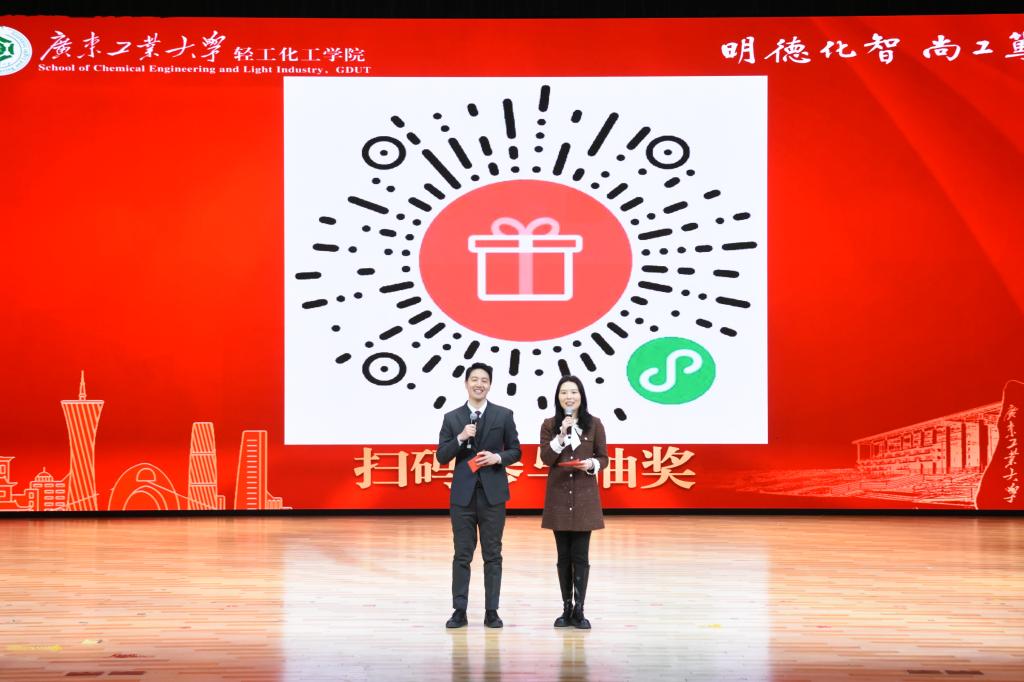 党政办公室张金名老师表演的旗袍舞《月圆花好》,舞姿柔美婉约,一颦一笑尽显东方古典韵味。四位食品系教师演绎的三句半《科研育人三句半,广工食品贺新春》,内容紧扣教学科研实际,在欢声笑语中道出了育人初心与学科特色。